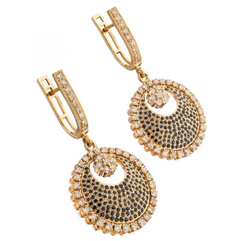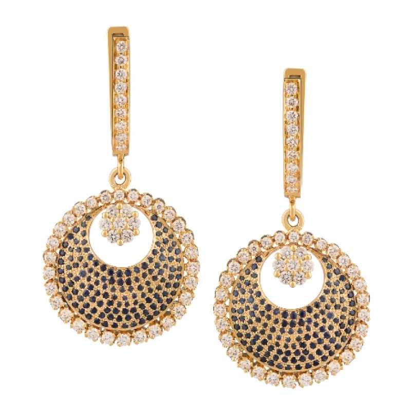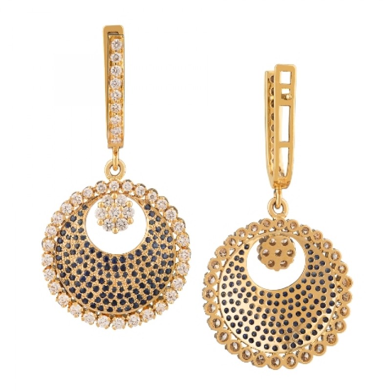 Made in 18 K Gold Gold (18 K) – 17.890 gms Diamond – 2.70 carat Blue Sapphire – 2.40 carat Dimensions (inch) : 1.89 (L) ; 0.96 (W)