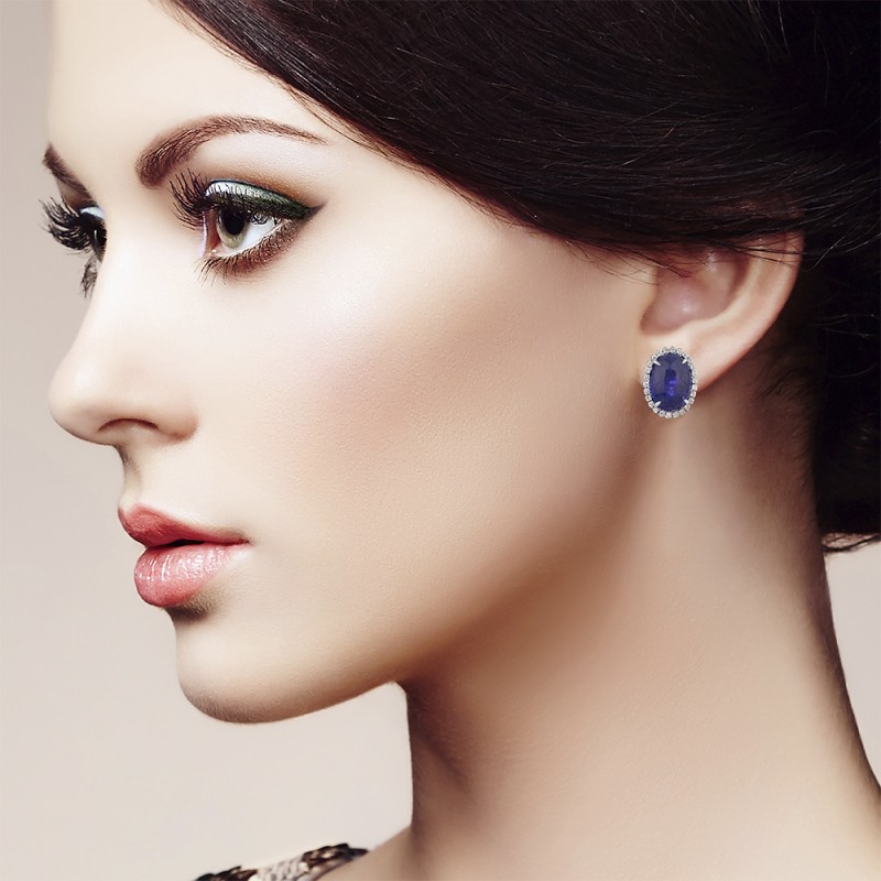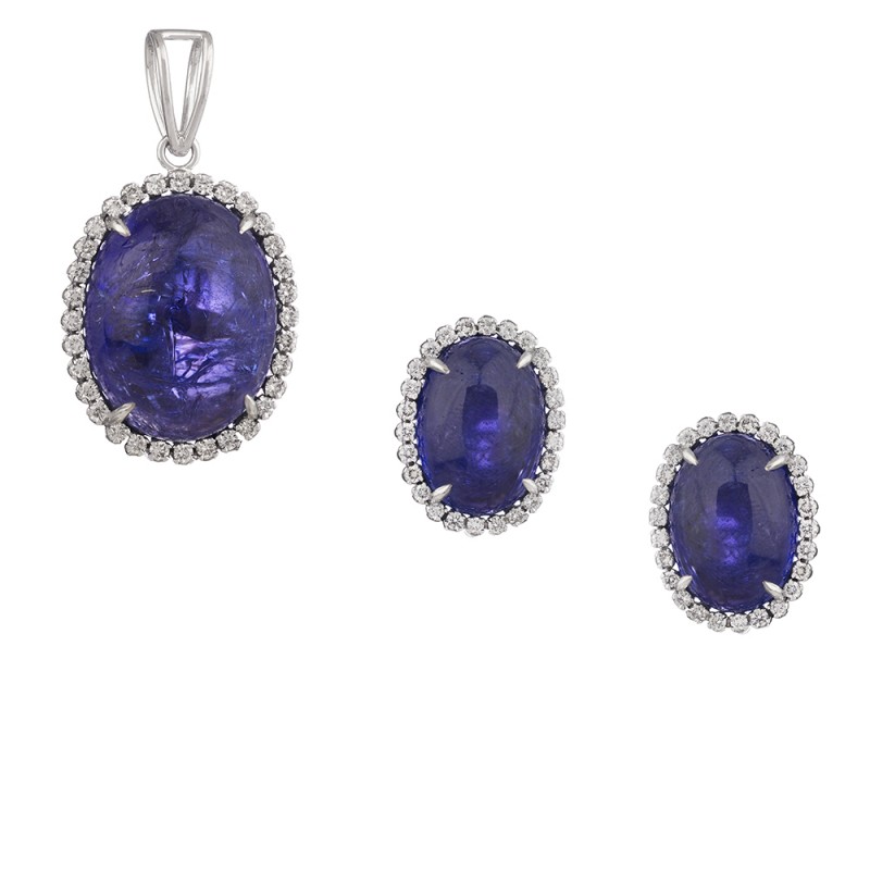 Pendant Set in white gold with Diamonds and Tanzanite cabochons